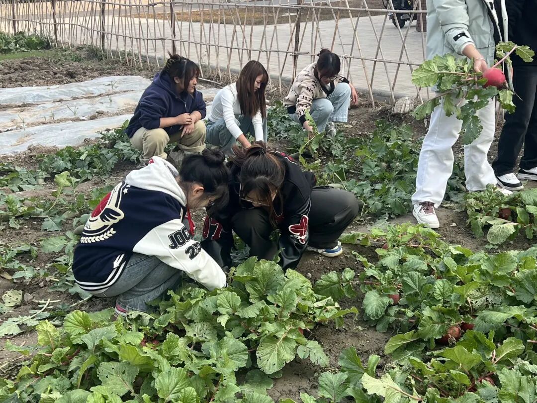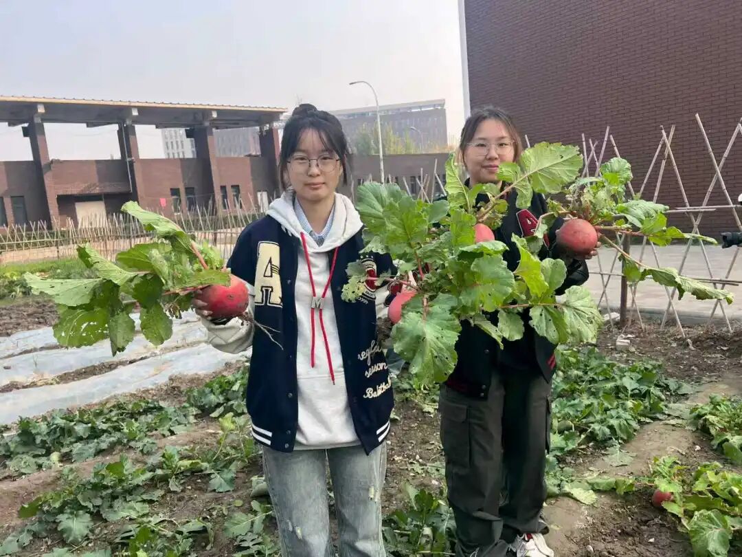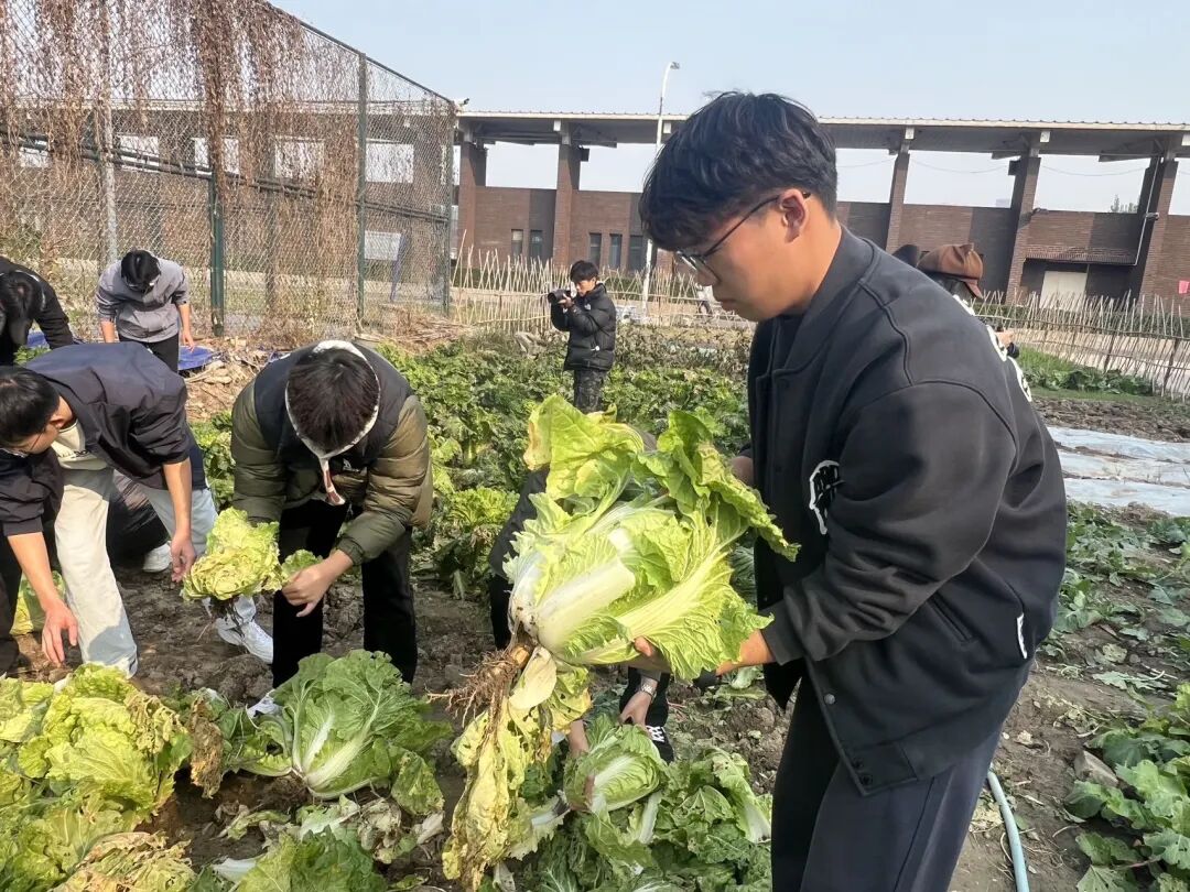 阳光洒落,同学们有序步入绿意盎然的菜园,开始采摘环节。在一片片欢声笑语中,同学们采摘了刚长成的大白菜和萝卜,在劳作中体会着收获的喜悦。