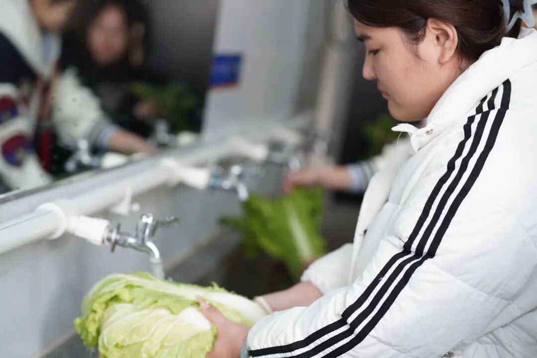 采摘完毕,满载蔬菜的篮子被送至清洗区。师生们分工协作,投入到细致的洗菜环节。大家边劳动边分享,同学们纷纷表示:“自己摘的菜,洗起来都格外有感情。”朴素的话语中洋溢着劳动的成就感。